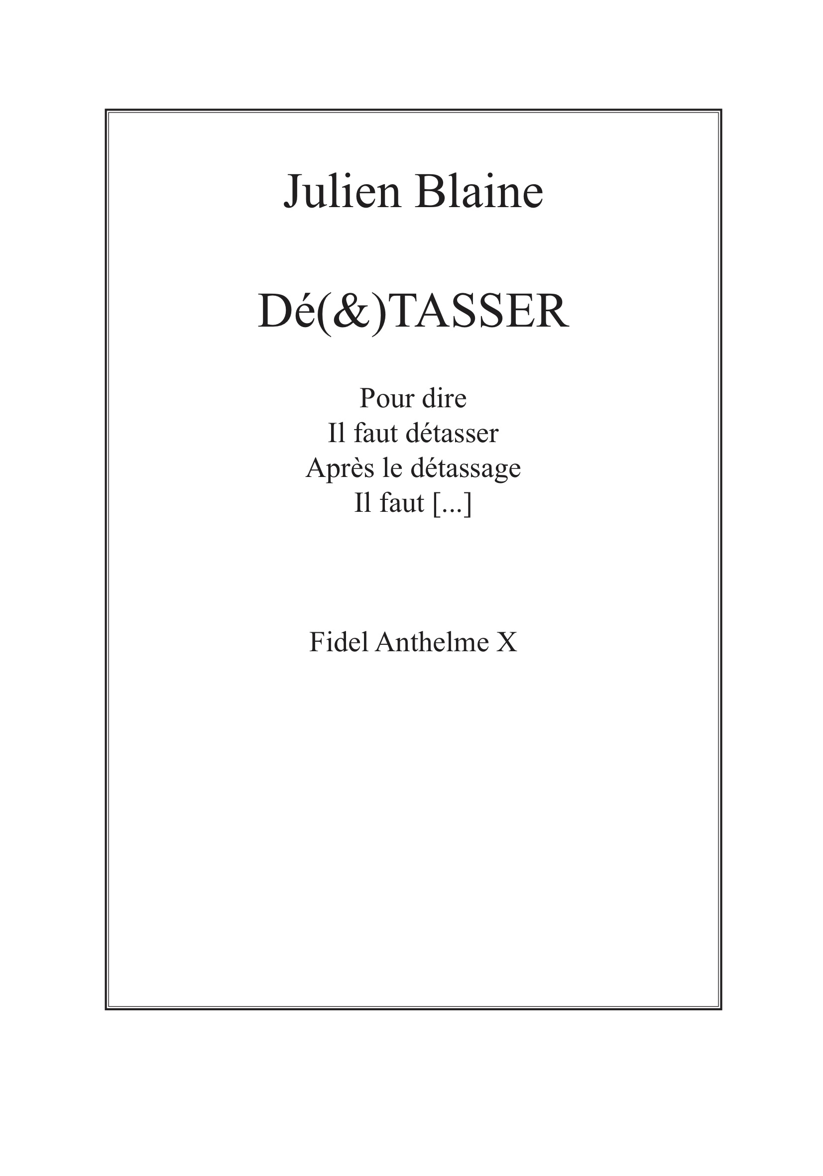 Avant de s’appeler Fidel Anthelme X, durant sept ans, nos éditions se sont nommées Intime Conviction. Intime Conviction était un groupement d’artistes, de poètes, qui refusaient la fixité d’un lieu et tentaient d’interroger l’espace intime de la création, de toute création. Ce qui nous intéressait, ce n’était pas d’avoir un lieu, une maison d’édition. Ce qui nous guidait, c’était la question : Comment inventer une poésie qui déborde partout ? Qui s’immisce en tous lieux du mystique au politique ? Nous nous enfermions alors dans des chambres d’hôtel*, creusions des trous*, fleurissions des noms oubliés au coin des rues*. Nous interrogions le précaire, (...)